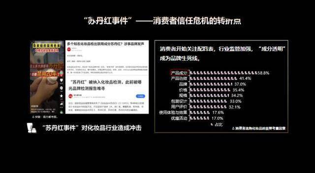 张毅暗示,分歧世代的消费存正在显著差别。过去,60后、70后、80后消费时,更关心产物的适用功能取价钱,很少自动查看配料表或成分表;而00后做为陪伴互联网成长的一代,获打消息的渠道愈加便利,他们采办化妆品、食物、护肤品时,会优先核查成分能否平安、能否天然,能否含有无害添加剂,成分表已成为他们消费决策的主要根据。客岁的“苏丹红事务”,让化妆操行业了庞大的危机,也进一步强化了消费者的成分焦炙取平安认识,鞭策“成分”趋向加快延伸。艾媒征询数据显示,有78%的消费者暗示会优先选择成分天然、平安的产物,有65%的消费者会由于产物成分存疑而放弃采办,这一数据充实申明,倒逼企业正在产物研发取出产中苦守平安底线强”中的相关品牌,已起头自动适配“成分”趋向,建立品牌信赖。一些美妆品牌从打“动物成分”“暖和配方”,正在产物包拆取宣传中清晰标注成分表,细致解读每种成分的功能取平安性;食物品牌则聚焦“零添加、纯天然”,通过第三方检测认证,证明产物的成分平安;日化品牌也正在原料选择上严酷把控,推出无磷、无荧光剂的产物,满脚消费者的平安需求。