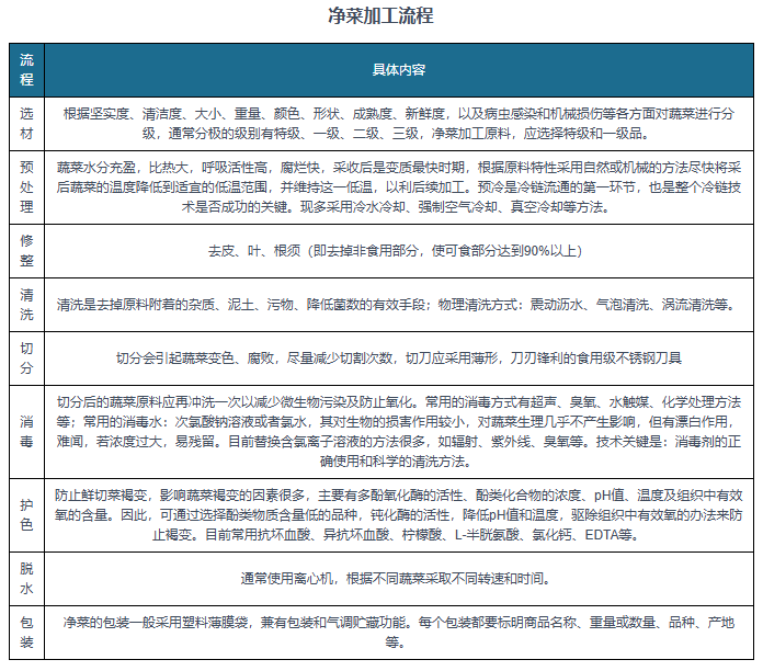 财产链来看,净菜行业财产链上逛包罗蔬菜种植、食物添加剂、包拆材料、加工设备等。蔬菜种植是净菜产物的次要原材料来历,涉及各类蔬菜的种植,包罗农户、种植等。食物添加剂供给用于保鲜、防腐等目标的添加剂。中逛为净菜加工企业。下逛消费市场包罗餐饮行业、商超、农贸市场、电商平台等,这些是净菜产物的终端发卖渠道。
